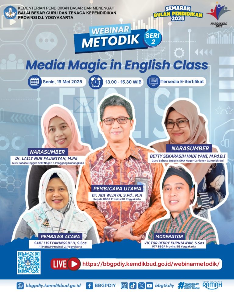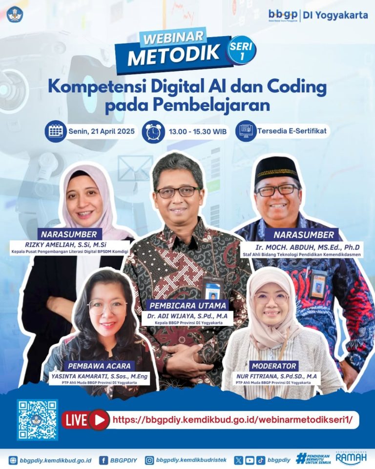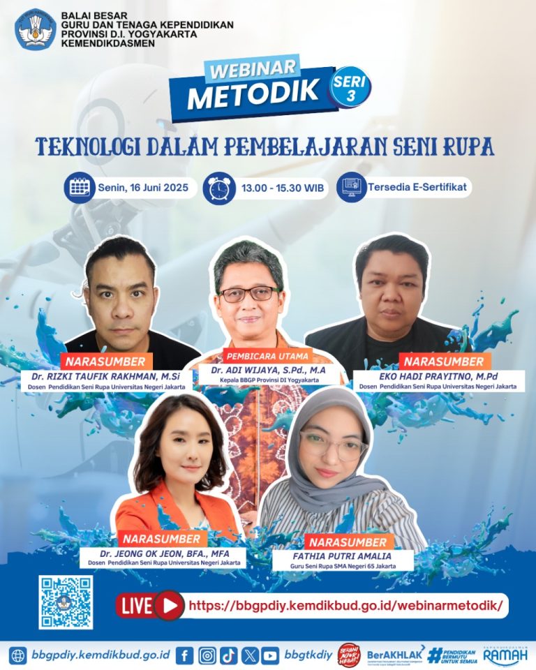Webinar Media Dan Teknologi Pendidikan (Webinar Metodik) Seri 4 “Teknologi Digital dalam Pembelajaran Mendalam ” Zoom Daftar hadir Materi Sertifikat Virtual Banner WEBINAR MEDIA DAN TEKNOLOGI PENDIDIKAN (METODIK)Seri 4:TEKNOLOGI DIGITAL DALAM PEMBELAJARAN MENDALAMHalo #sahabatBBGTKDIY dimanapun berada… Perkembangan digital membawa tantangan…