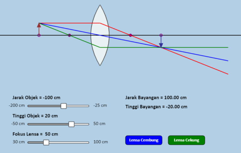 Simulasi cahaya pada lensa cembung dan cekung Alat ini digunakan untuk melihat pengaruh bayangan yang melewati lensa cembung dan cekung