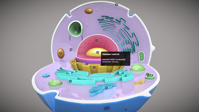 Peraga maya ini menampilkan bagian-bagian organ sel hewan yang dilengkapi dengan nama berikut fungsinya. Melalui peraga maya ini peserta didik diharapkan mampu memahami nama organ sel hewan dan fungsinya.